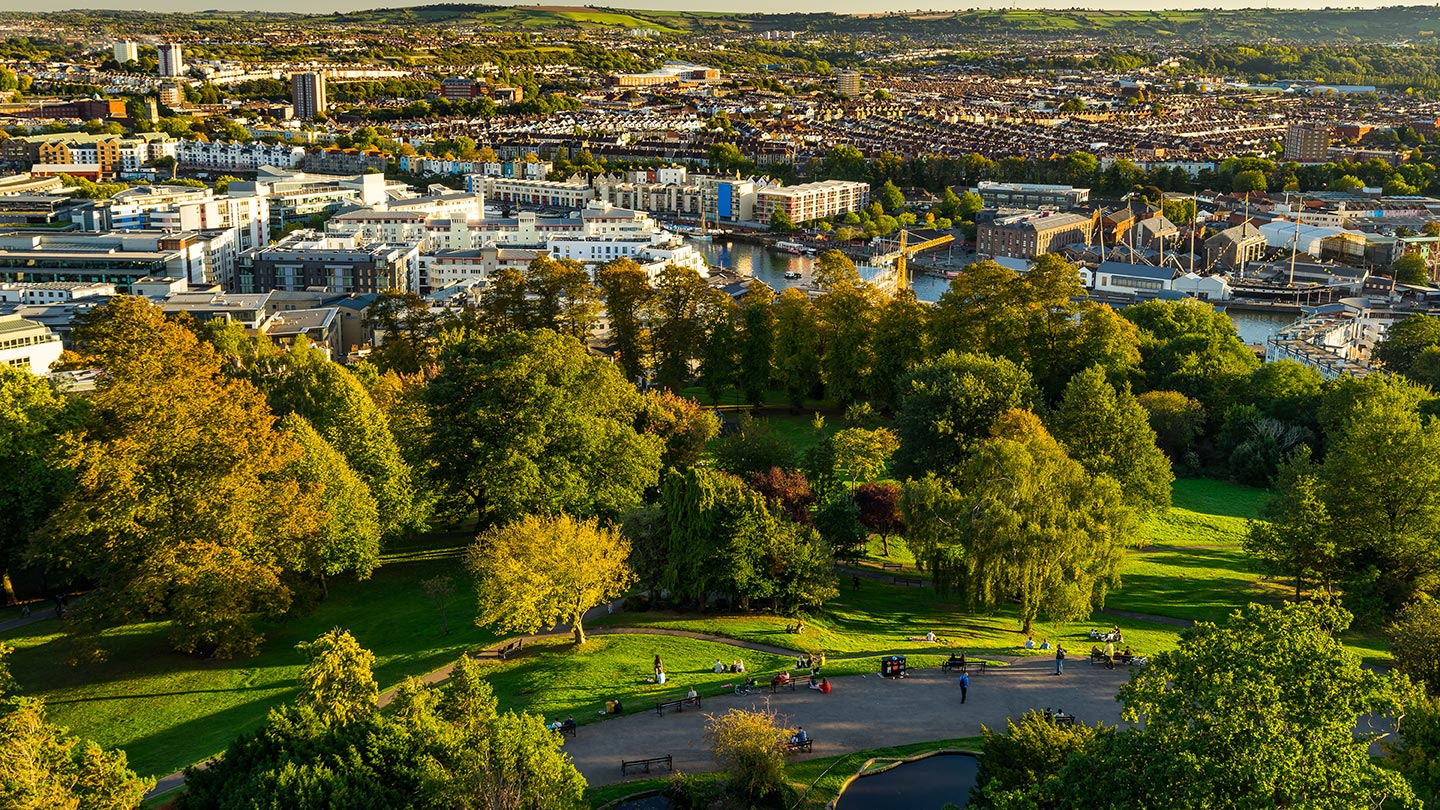 Trots att Bristol är en stor stad finns många parker, grönområden och utsiktsplatser.