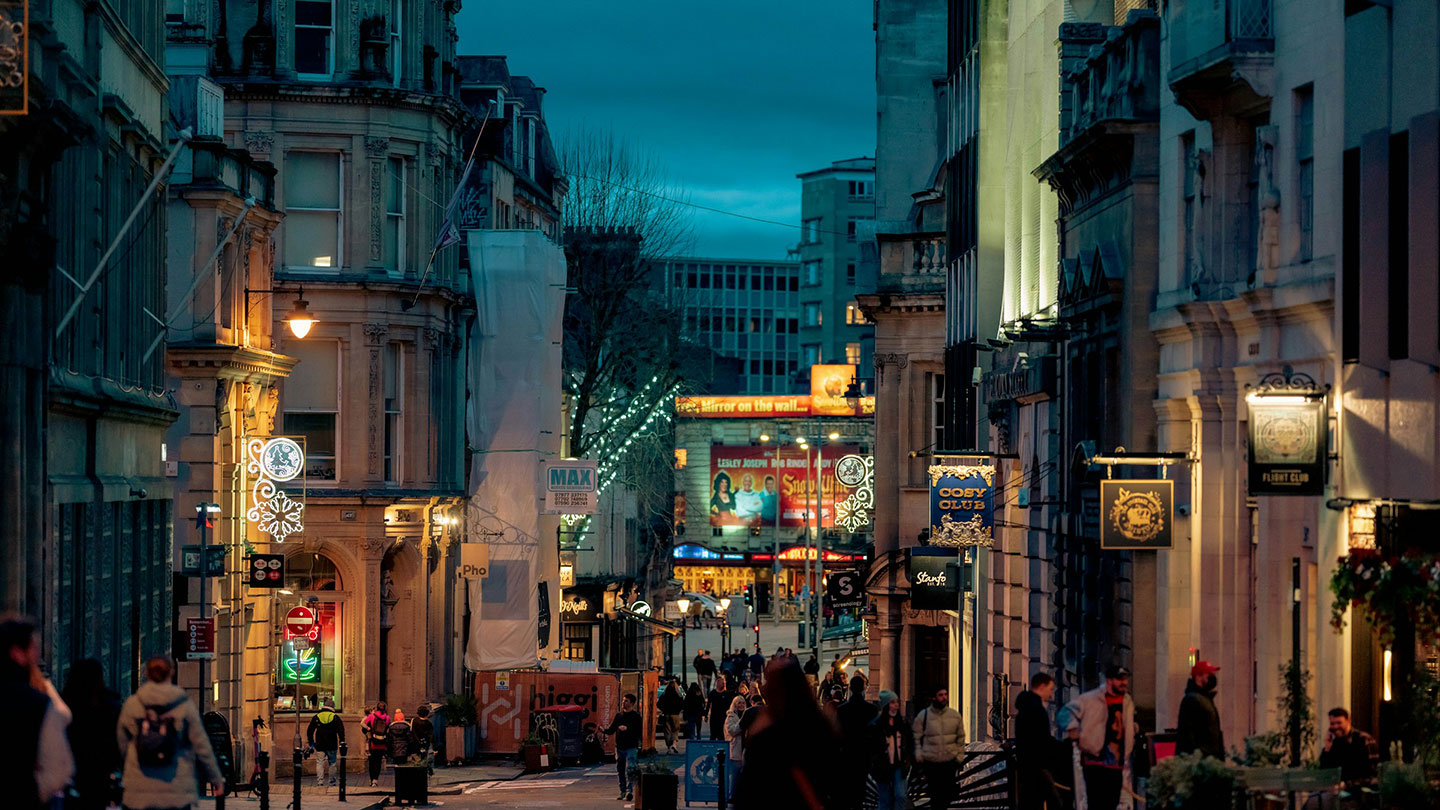 Besök St Nicholas Market för street food och avsluta kvällen i Harbourside med utsikt över vattnet.