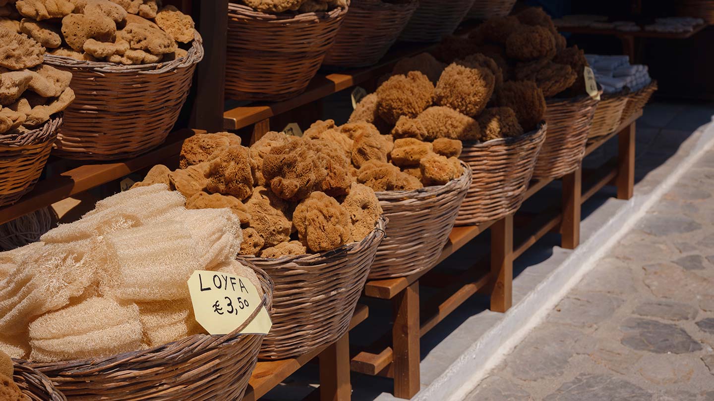 Symi är känd för sina historiska svampfiskare, och svampar säljs fortfarande som souvenirer på ön. Andra populära produkter är olivoljor, honung och handgjorda tvålar. Många butiker erbjuder även keramik, textilier och smycken med lokal design.