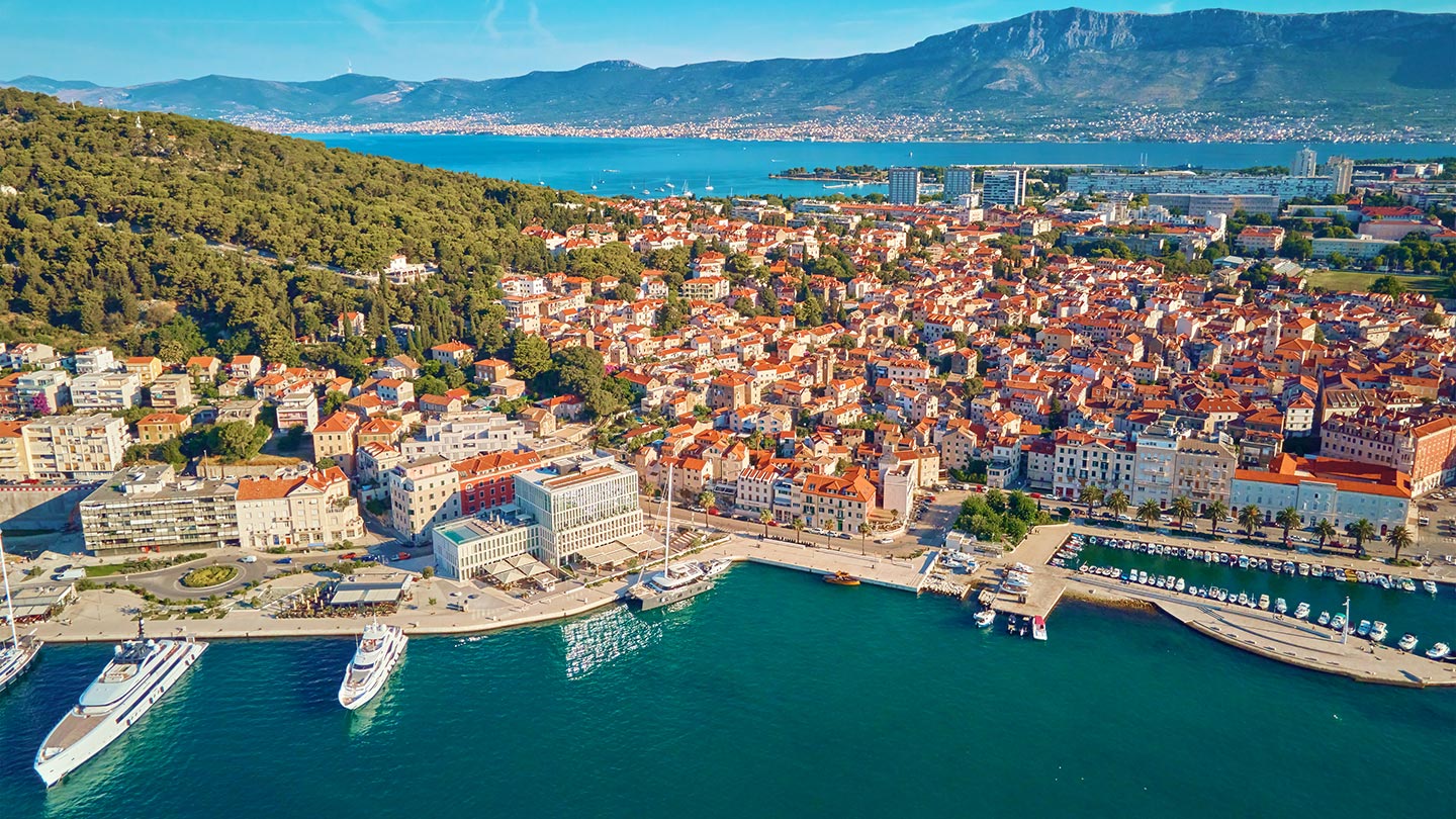 Split ligger vid Adriatiska havet i den kroatiska regionen Dalmatien, på landets centrala kust, omgivet av öar och berg.